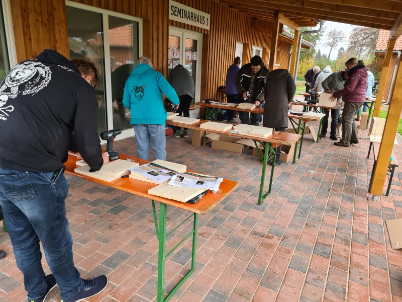 Unter fachkundiger Leitung wurden zusammen mit Naturfreunden aus dem Raum Flotwedel wetterfeste Unterschlüpfe aus vorgefertigten Bausätzen hergestellt.